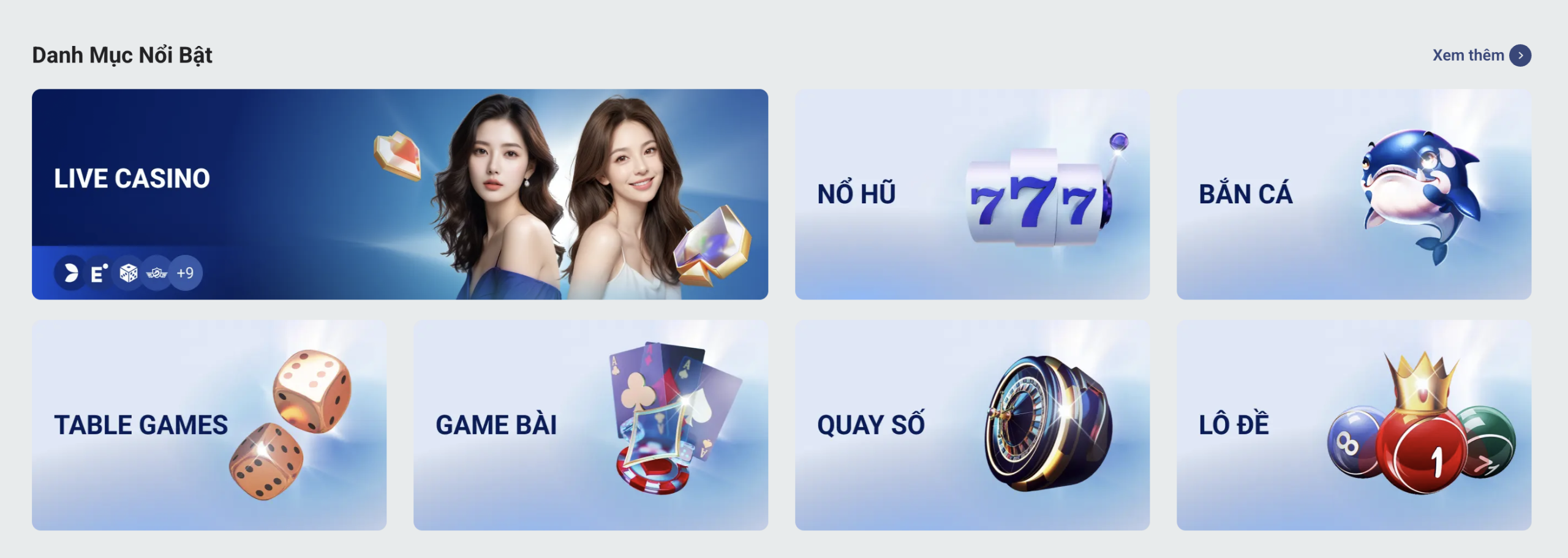 Không chỉ thu hút hội viên tham gia bởi những ưu điểm nổi bật mà thương hiệu này còn nhận về sự quan tâm nhờ kho game đa dạng như sau:
